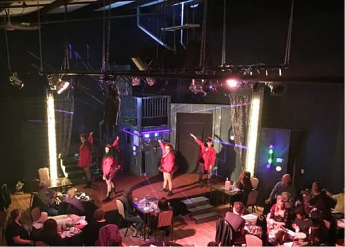 The Square Foot Theatre will provide a different type of setting for BETM than has been seen in other regional productions. At Square Foot the audience sits around tables, and are encouraged to bring their own food and drink to enjoy while watching the show. A total of 20 tables seating just 84 patrons will provide a very intimate setting for this production of BETM.