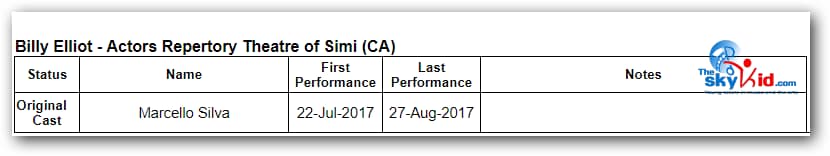A 33 member cast will be led by 11 year old Marcello Silva, who is debuting in the role of Billy Elliot in the Actors’ Repertory of Simi production of the musical.