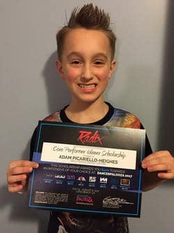 Adam’s dance performance training has mostly come via the Sally Gould Dance Center (2010-2018) in Billerica, where he took classes in jazz, tap, ballet, lyric and hip hop dance styles over the years. While studying there, Adam was named a “Core Performer” at the Radix dance convention and was awarded a scholarship to attend its national convention in Las Vegas.