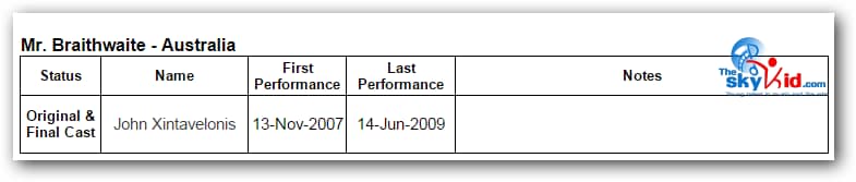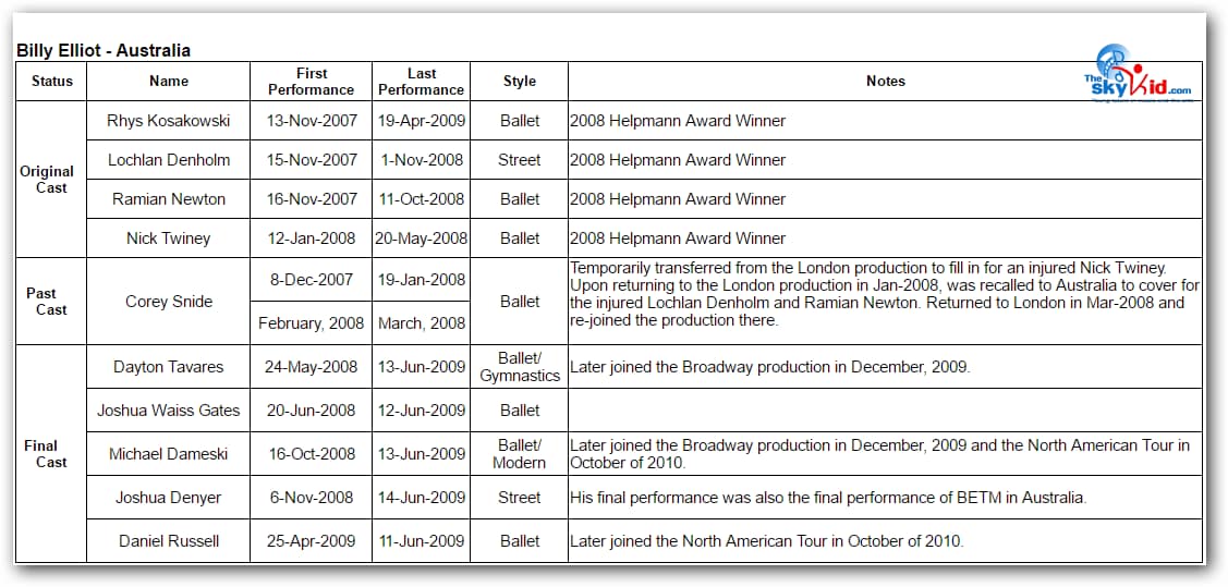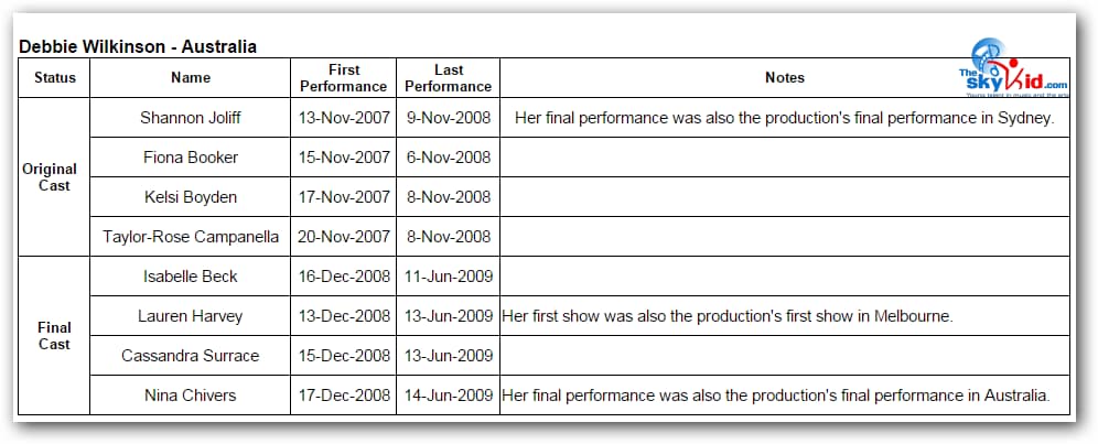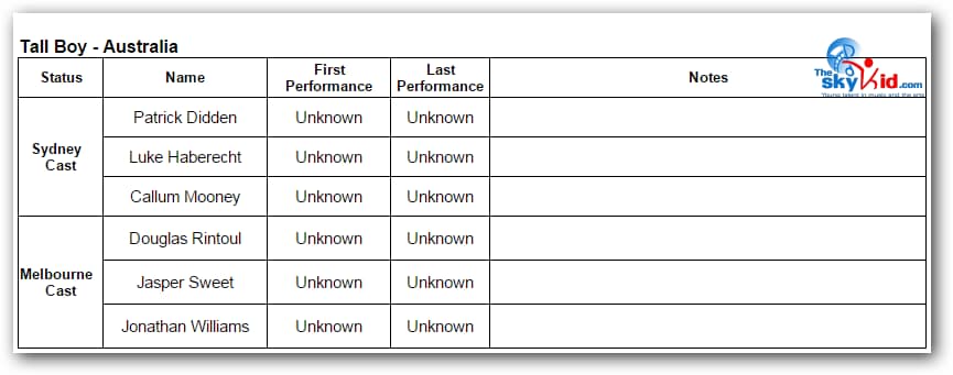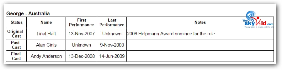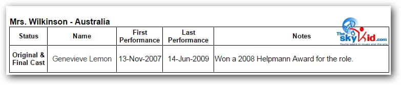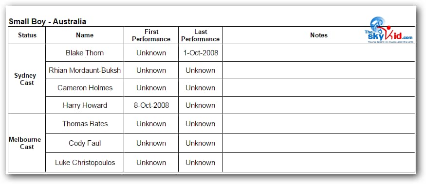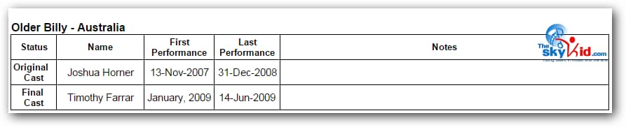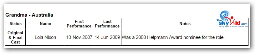 First in Sydney, then in Melbourne, the adult cast remained essentially the same, while the child cast was almost completely new in Melbourne from the child cast in Sydney.