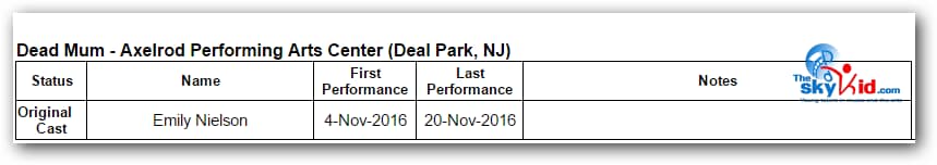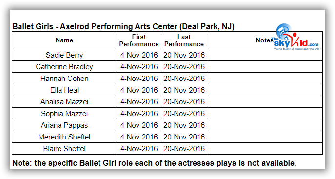 Note: A full cast list was not available for this production, so some cast members are missing from these charts.
