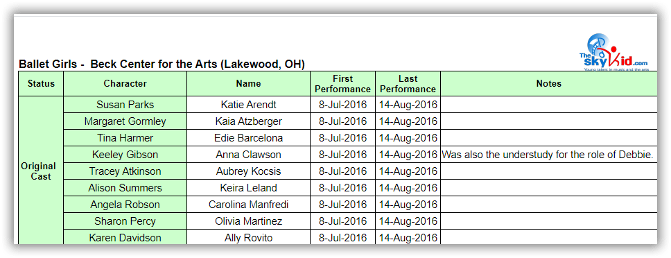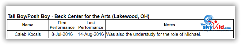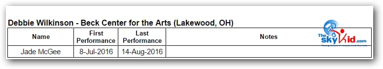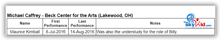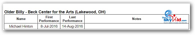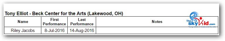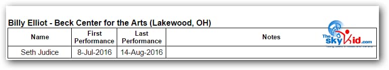 A regional production of BETM will be presented at the Beck Center for the Arts in Lakewood, OH, from July 8 to August 14, 2016. The 35 member Beck Center cast will be led by Seth Judice in the role of Billy Elliot.