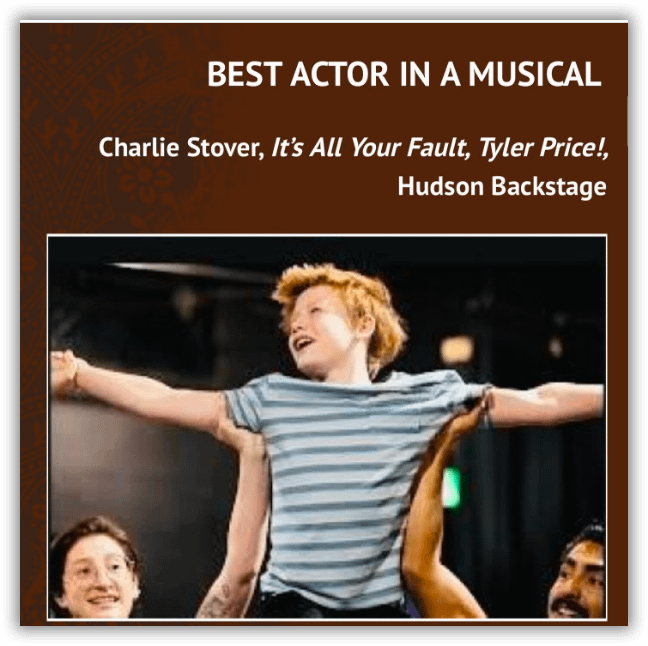For his work in It’s All Your Fault Tyler Price Charlie won “Best Actor in a Musical” award.