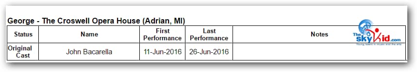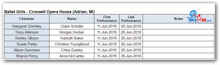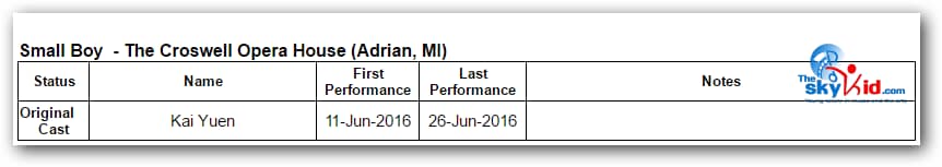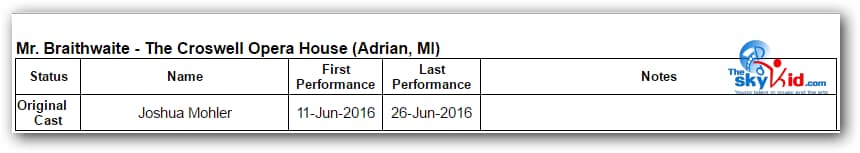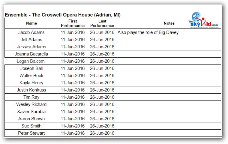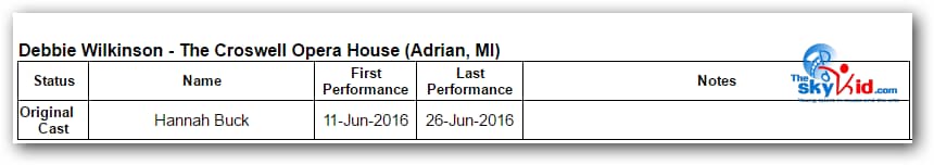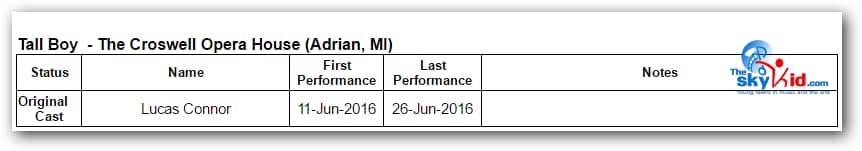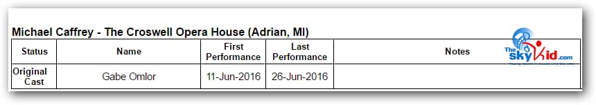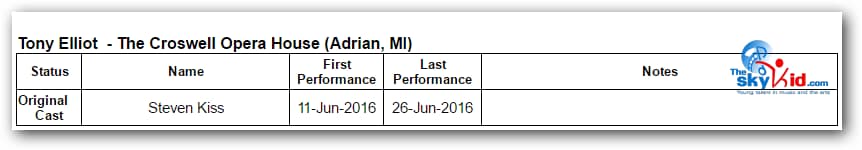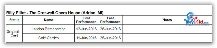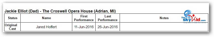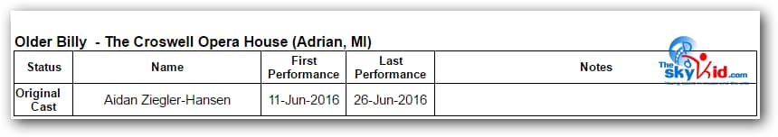 A production of Billy Elliot the Musical took place at the Croswell Opera House in Adrian, MI, from June 11-26, 2016.