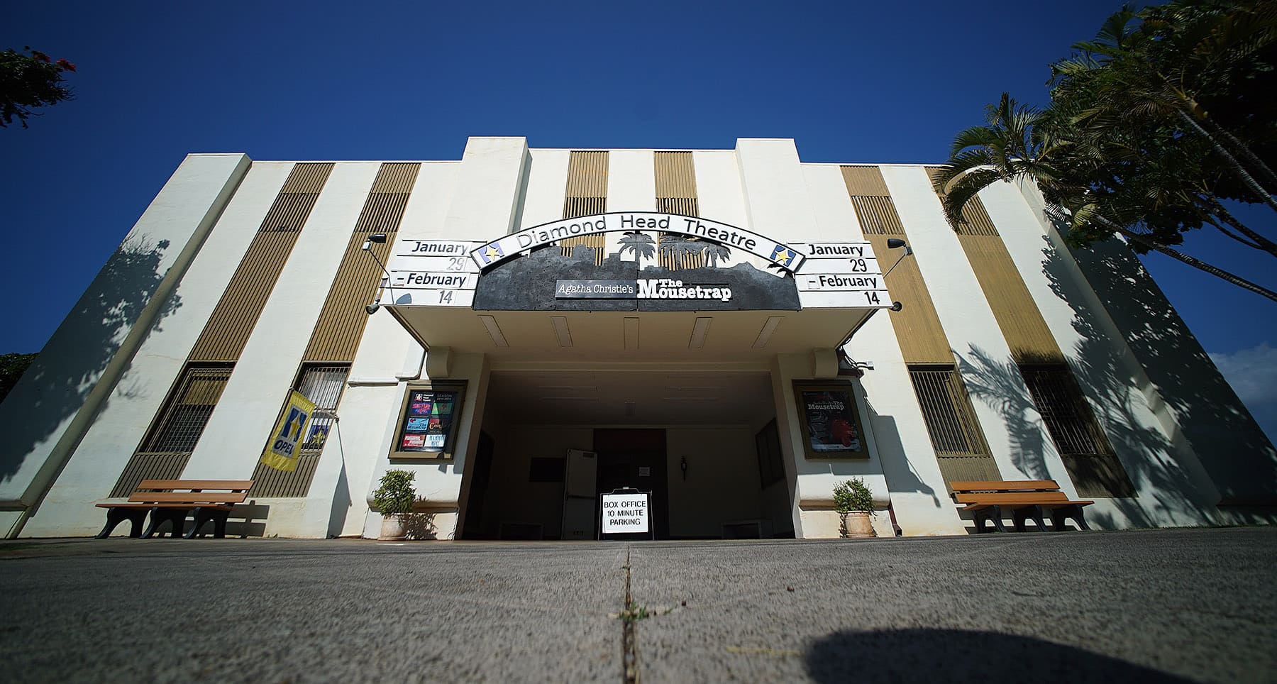 The Diamond Head Theatre is the third oldest continuously operating community theatre in the USA. It began in 1915 as a company of theatergoers known as “The Footlights”, and then in 1932, their name changed to “Honolulu Community Theatre”. They performed in many different locations all over Honolulu until 1952 when an Army movie house at Fort Ruger became the theatre’s home. In 1990 the theatre gained its current name – Diamond Head Theatre.