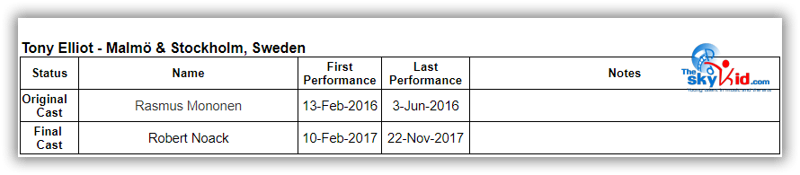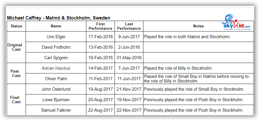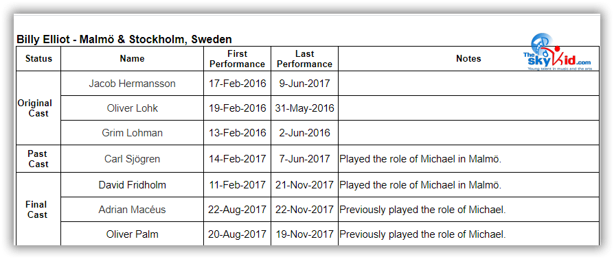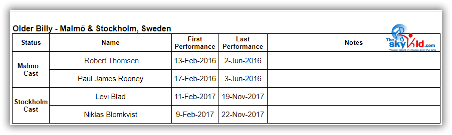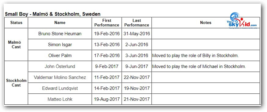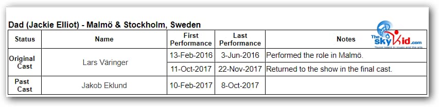 - David Fridholm and Carl Sjögren both played Michael in Malmö and went on to play Billy in Stockholm.