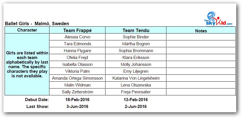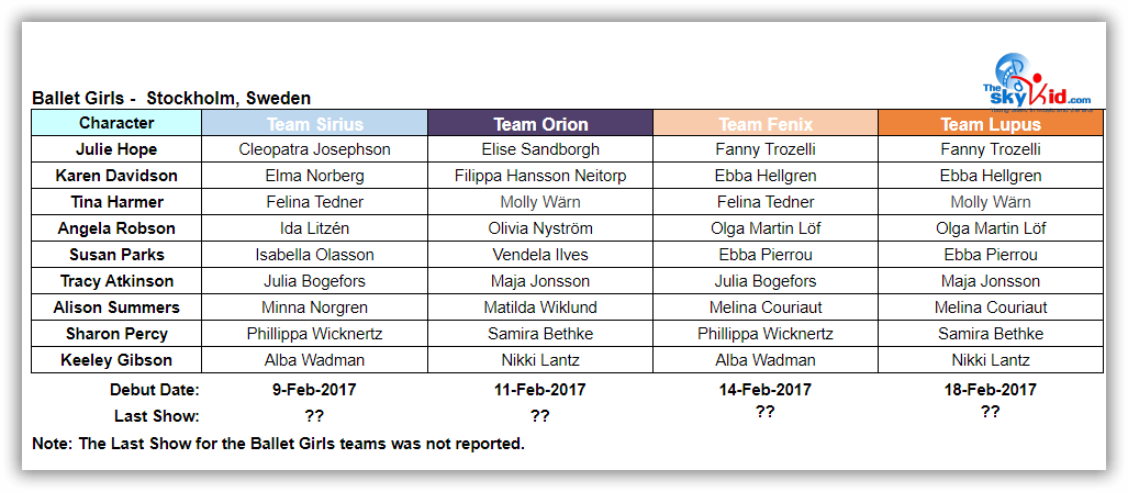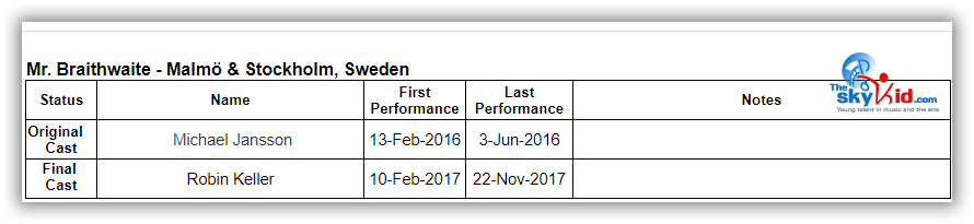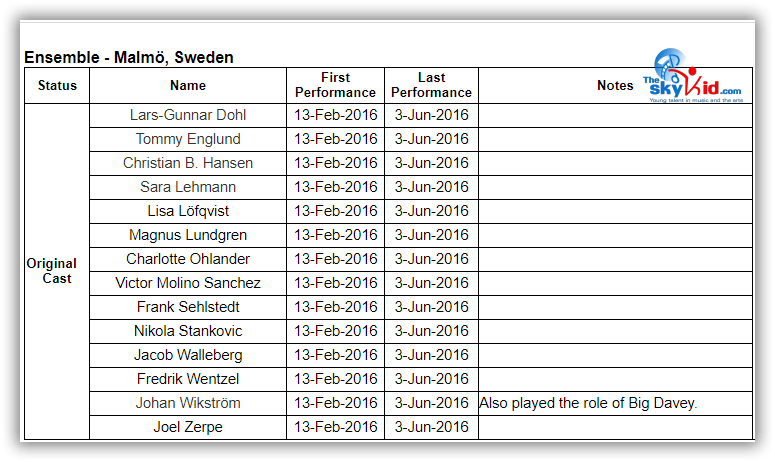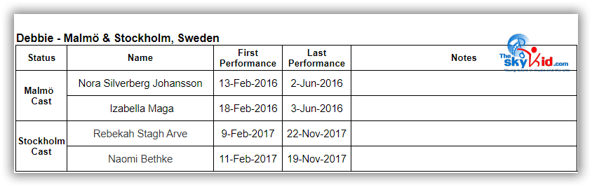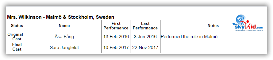 Although much of the adult cast for the Stockholm production are different from the Malmö cast, many members of the Malmö child cast performed in Stockholm for the shows before the summer break: