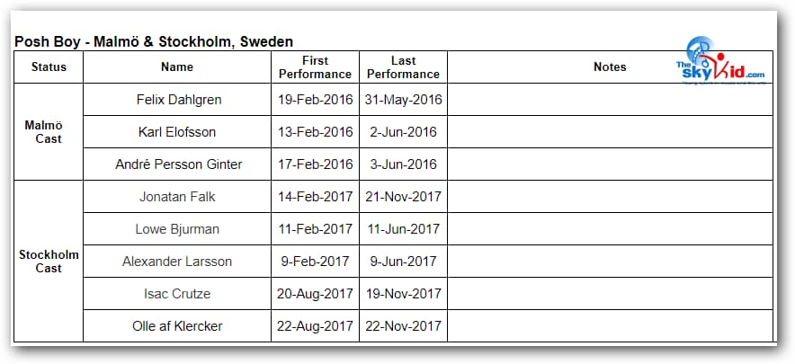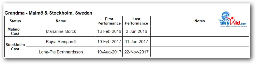 - Grim Lohman played Tall Boy in Stockholm, having previously played Billy in Malmö.