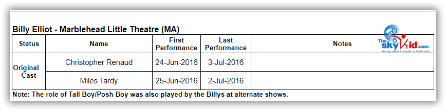 The cast of 31 actors were led by two young men who played Billy Elliot. They are Christopher Renaud and Miles Tardy.