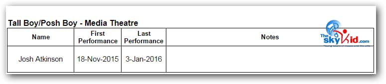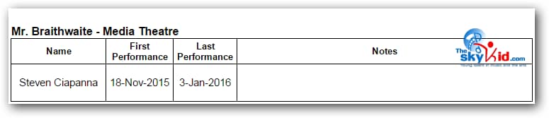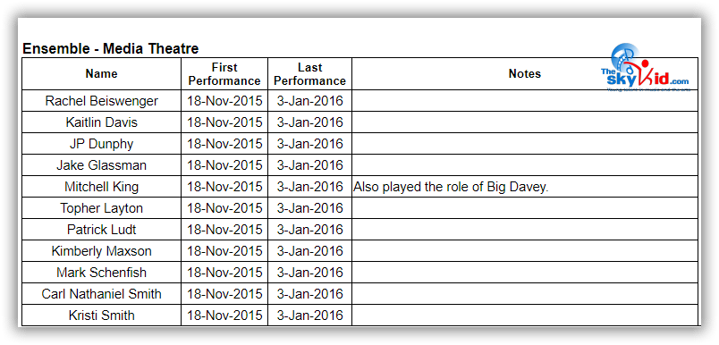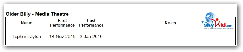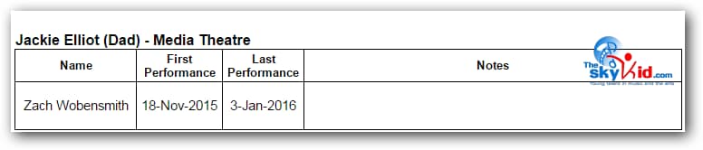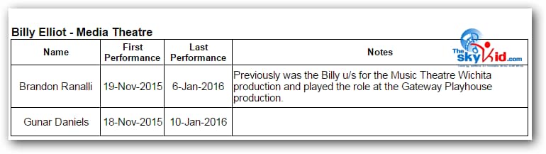 The cast for the show was lead by two 13-year-old Pennsylvania actors: Brandon Ranalli, who is from Media, and Gunar Daniels from West Chester — ages at the time of their debuts in Media. Brandon has experience in the role, having understudied Billy at the Wichita Music Theatre and then sharing the role with veteran Billy Mitchell Tobin in the Gateway Playhouse production of BETM at the Patchogue Theatre this past summer. Gunar makes his debut as Billy in the Media Production.