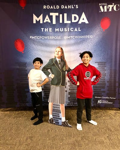 Nathan comes from a family of dancers and has performed in musical productions on stage in Winnipeg. For example, in 2019 Nathan played one of the children in the highly acclaimed production of Matilda presented by the Royal Manitoba Theatre. He and his older brother Johan played the roles of Eric and Nigel and were featured with a cutout of the young actress playing the title role on the cover of the production’s program.