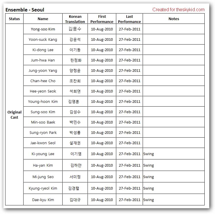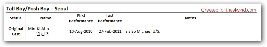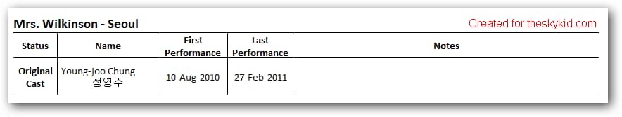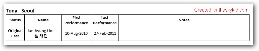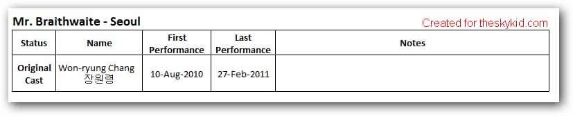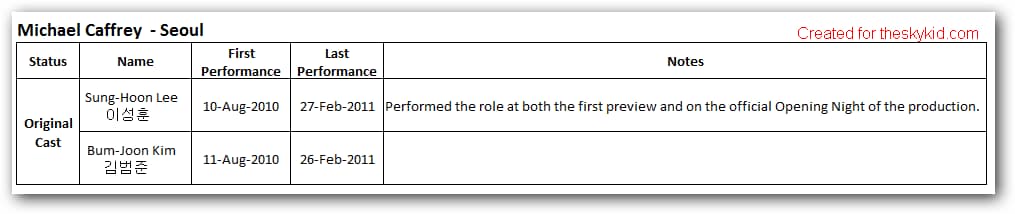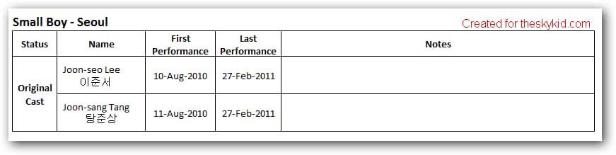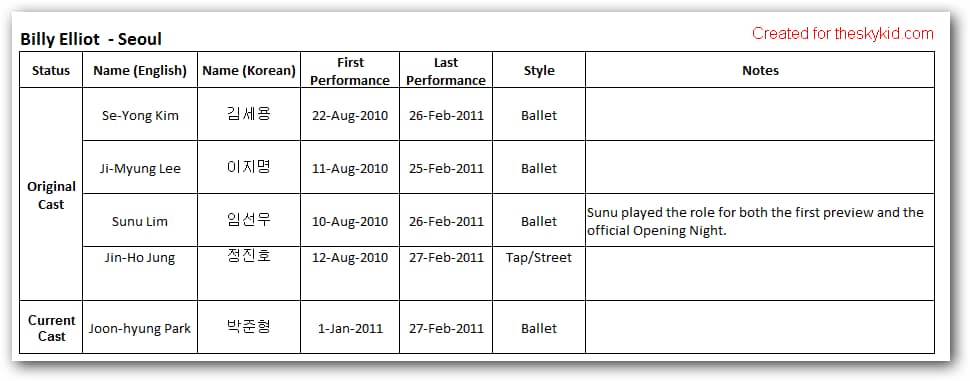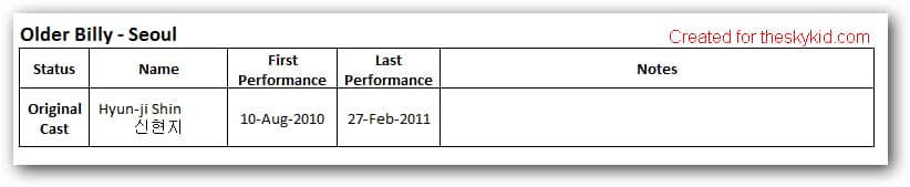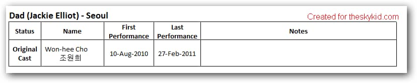 After the huge success of the show in the UK, Australia and the US, Billy Elliot the Musical (BETM) opened at the LG Arts Center on August 13, 2010 in Seoul, South Korea — the first non-English speaking country where it had ever played. The show ran for 233 performances in an almost seven month period, closing on February 28, 2011.