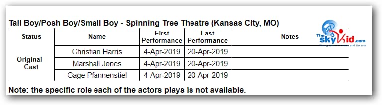These three boy are playing the roles of Tall Boy, Posh Boy and Small Boy in the show. They are Gage Pfannenstiel, Marshall Jones and Christian Harris.