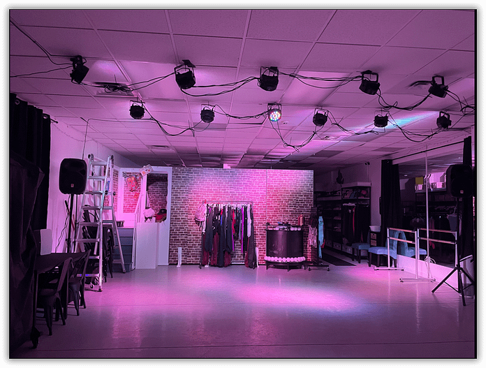 To get an idea of the black box theatre space at “your dance closet”, here’s a photo of a recent Theatre on Main Street production there: