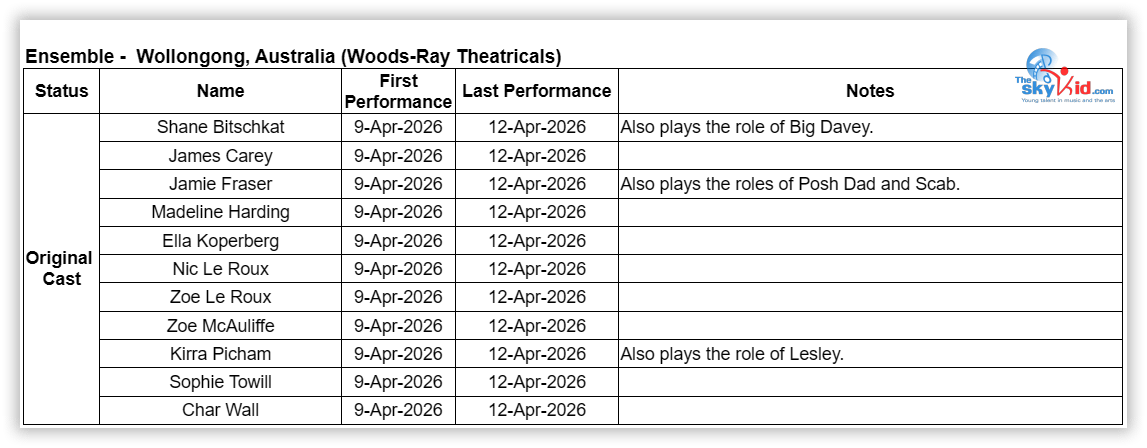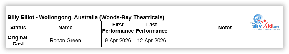 This production features a cast of 28 performers led by Rohan Green as Billy.