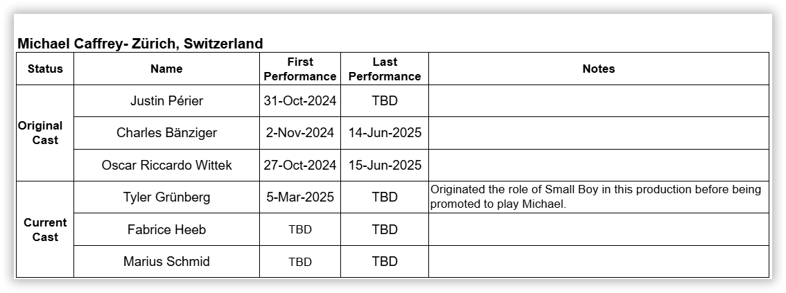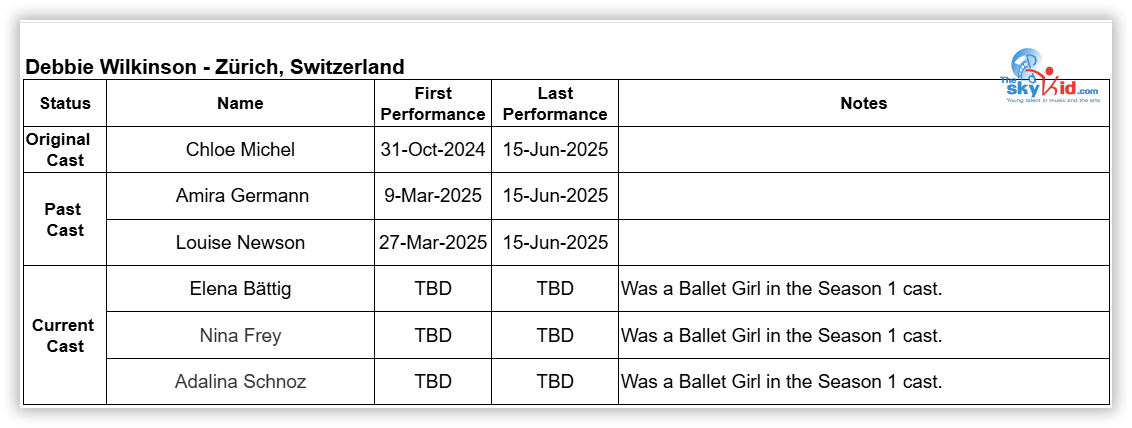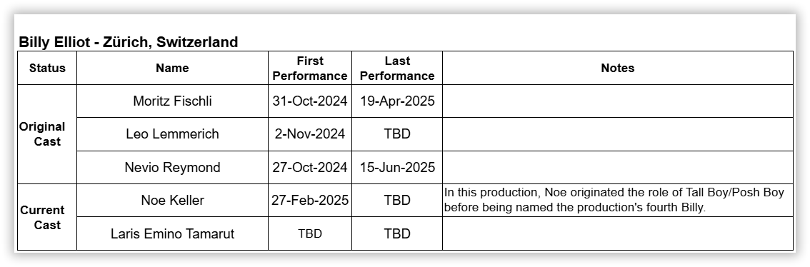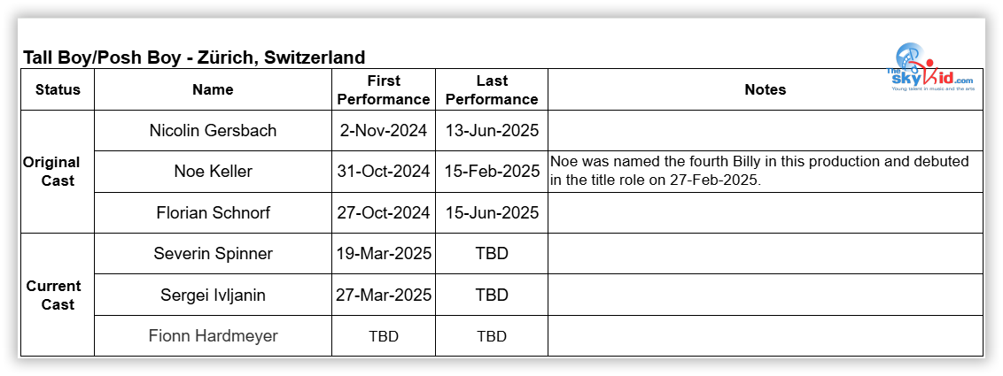 In Season 1, leading a company of 58 actors were three boys in the title role of Billy: Moritz Fischli, Leo Lemmerich and Nevio Reymond.